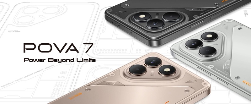 Tecno POVA 7 5G, juga rilis 2025, mengusung Dimensity 7300 Ultimate dan layar IPS LCD 6,78 inci dengan refresh rate tinggi 144 Hz, yang sangat mendukung pengalaman gaming.