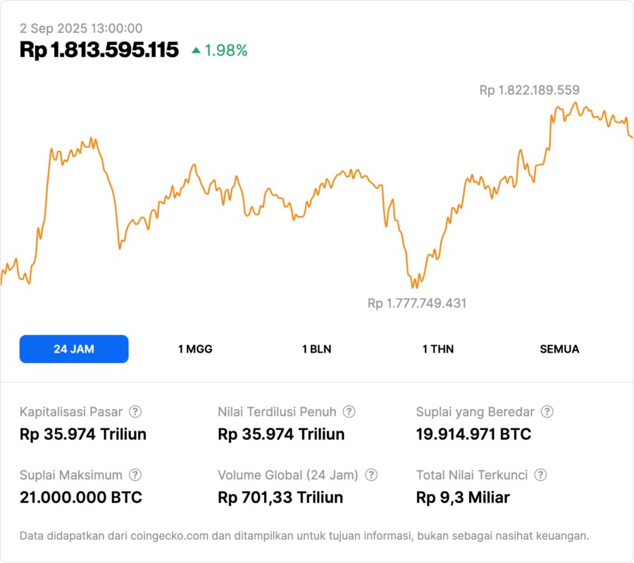 1. Harga Bitcoin (BTC) Sempat Turun ke Rp1,76 Miliar, Terendah dalam 2 Bulan