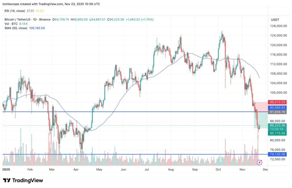 Setelah itu, fokus berpindah ke $90.000, diikuti oleh serangkaian likuidasi lainnya. Saat ini, $84.000 tampaknya menjadi dasar harga baru yang ditargetkan oleh mayoritas trader spekulatif Bitcoin.