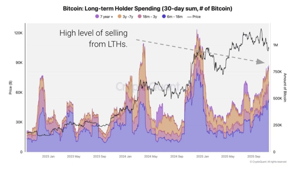 Sumber: CryptoQuantPenurunan harga Bitcoin hari ini disebabkan oleh aksi jual berkelanjutan dari investor besar (whale), di tengah penguatan pasar emas dan saham. Berdasarkan analisis data pasar dari CryptoQuant, pemegang jangka panjang Bitcoin telah melakukan aksi jual agresif, serupa dengan tren pada kuartal keempat tahun 2024.