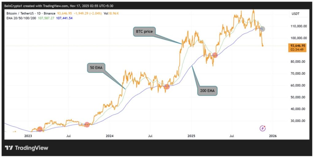 - BeInCrypto. Bitcoin Death Cross Price History 2025. Diakses pada tanggal 17 November 2025