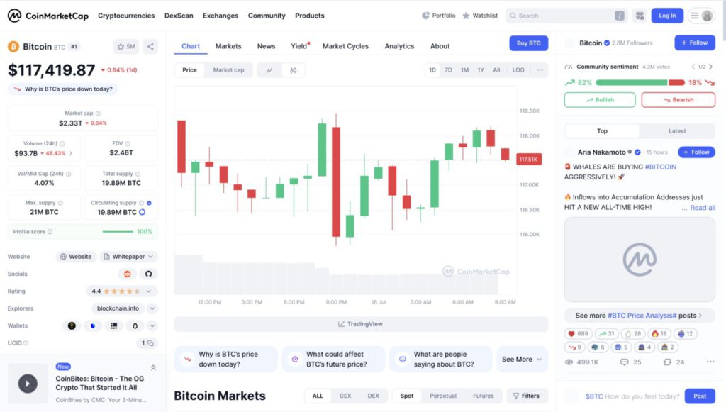 - Crypto Times. Bitcoin Pulls Back Below $117k as Profit-Taking Hits, Bounce Back Incoming. Diakses pada tanggal 16 Juli 2025