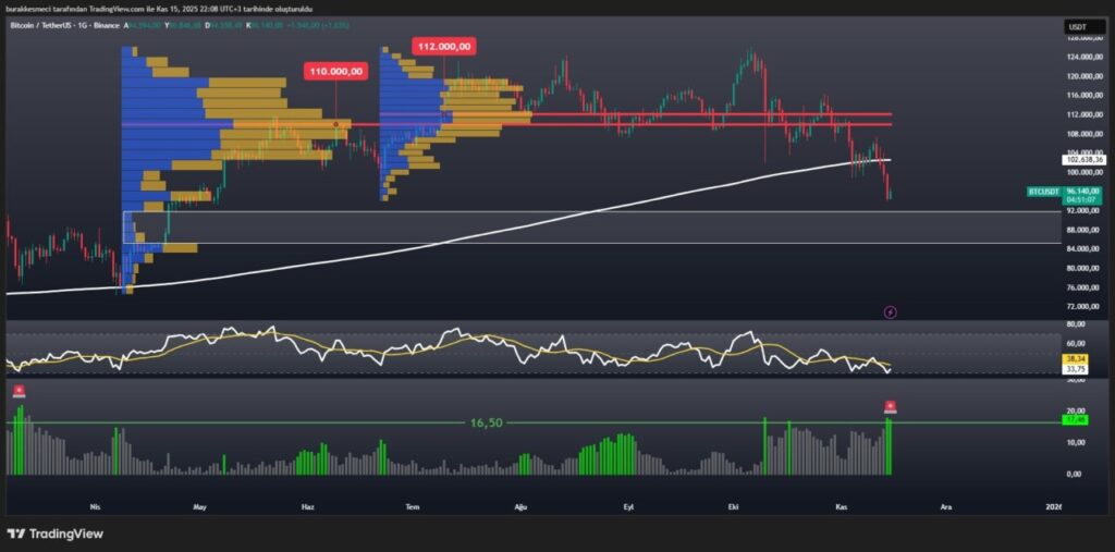 Menurut analisis Burak Kesmeci, ada celah volume antara $95.000 dan $85.000 yang belum terisi. Jika harga Bitcoin menutup di bawah $95.000, bisa terjadi penurunan tajam untuk mengisi celah tersebut, yang mungkin membawa harga ke $85.000.