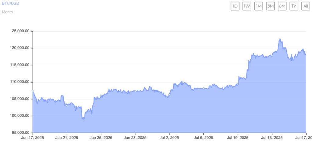 Jakarta, Pintu News – Bitcoin mengalami penurunan tajam pada hari Selasa setelah sebelumnya sempat menyentuh rekor tertinggi baru sebesar $123.091. Dalam waktu 24 jam, harga Bitcoin turun sebesar 4,73% menjadi $116.800. Penurunan ini terjadi karena para trader jangka pendek mulai mengamankan keuntungan mereka. Penurunan ini merupakan momen jeda dalam apa yang telah menjadi reli kuat sepanjang bulan Juli.