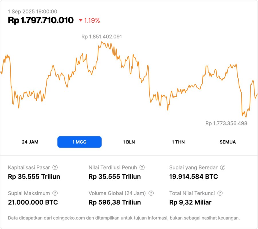 - BeInCrypto. It Was a Tumultuous Week: What Drove the Price Drop. Diakses pada tanggal 1 September 2025