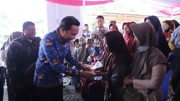 Bupati Jember Muhammad Fawait menyalurkan Bantuan Langsung Tunai (BLT) dari Dana Bagi Hasil Cukai Hasil Tembakau (DBHCT) tahun 2025 kepada para pekerja tembakau secara simbolis di halaman Pabrik Bin Cigar, Kecamatan Sukorambi, Kabupaten Jember, pada Jumat, 28 November 2025. Dok. Pemkab Jember