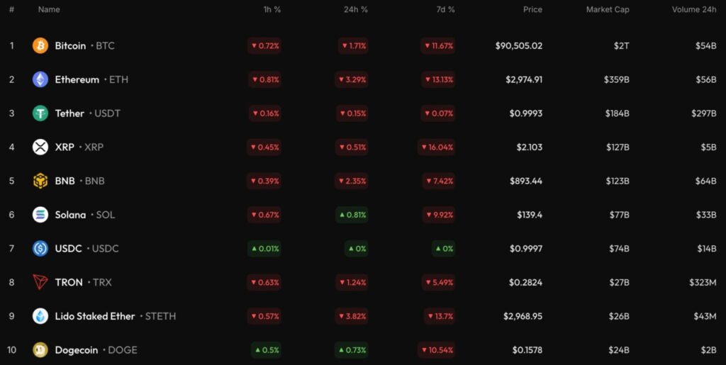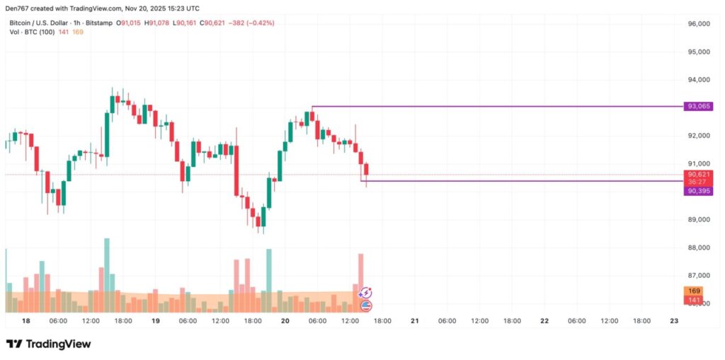 A2: BTC gagal mempertahankan dukungan lokal di $90.395.