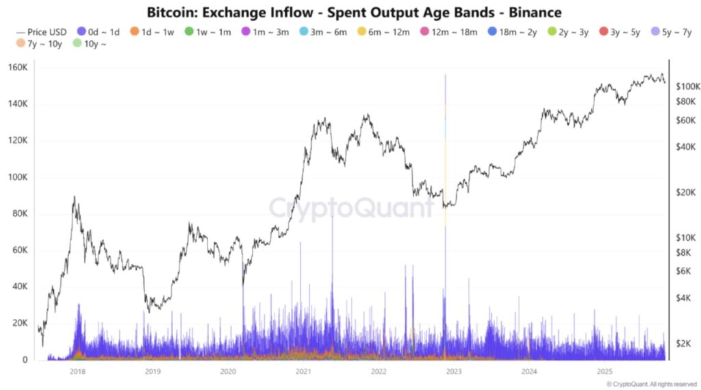PelinayPA mencatat bahwa meskipun harga Bitcoin (BTC) telah turun dari lebih dari $126.000 menjadi sekitar $109.000 di paruh kedua tahun 2025, terjadi peningkatan yang mencolok dalam arus masuk Bitcoin (BTC) 0-1 hari ke bursa.